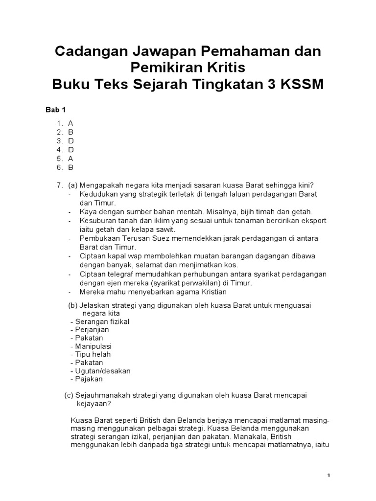 Ejercicio De Soalan Objektif Sejarah Bab 1 3 Ting 5